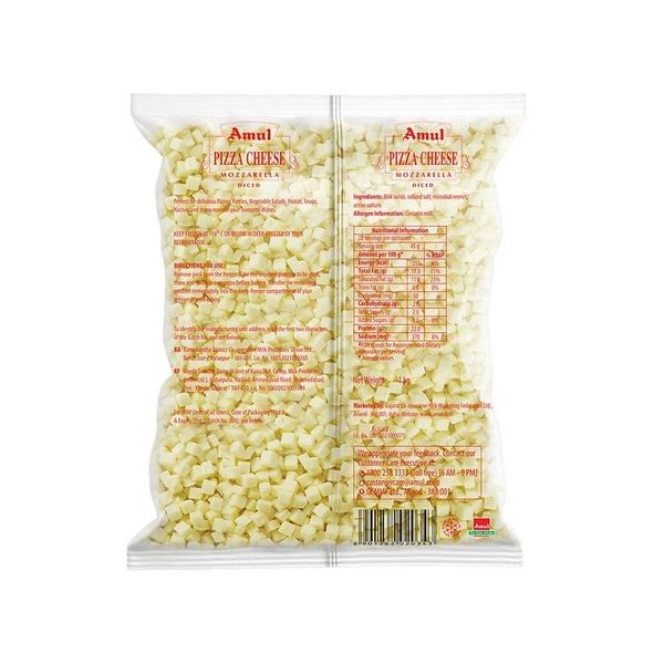 "Amul Pizza Mozzarella Diced Cheese" is a premium, shredded mozzarella cheese in convenient diced form, perfect for topping pizzas, pasta, and other Italian dishes.