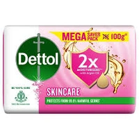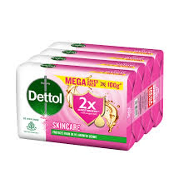 Dettol Skincare Soap 4*100 gm: Antibacterial soap enriched with moisturizers to protect against germs while keeping the skin soft and nourished for a healthy and refreshing cleansing experience.
