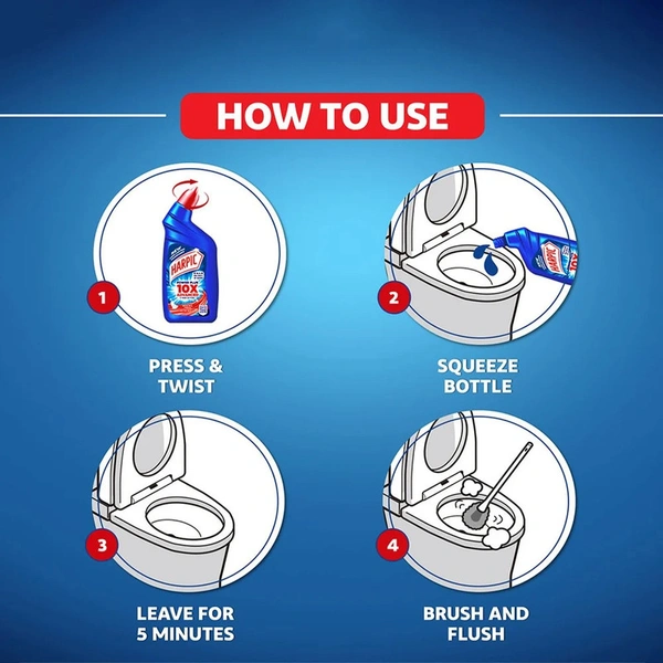 Harpic 10x Disinfectant Liquid Toilet Cleaner - (Original) - Pack of 3 - 1 ltr is Advanced 10x cleaning formula for tackling tough stains and germs. Pack of three ensures long-lasting hygiene and freshness for your toilets.