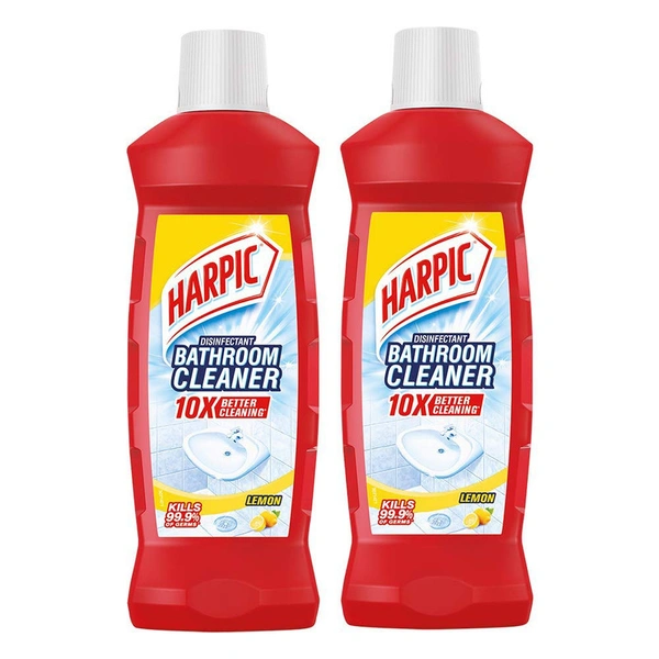Harpic Disinfectant Liquid Bathroom Cleaner Liquid (Lemon - 500 ml) - Pack of 2 x 500ml is Dual pack of lemon-scented bathroom cleaner that removes stains and kills 99.9% of germs. Keeps your bathroom hygienic and fresh.