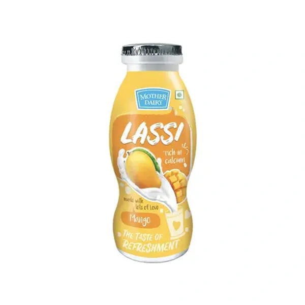 Mother Dairy Mango Lassi: A refreshing mango lassi made from yogurt and mango puree, offering a sweet and creamy drink.