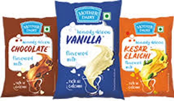 Mother Dairy Vanilla Flavored Milk (Pouch): A sweet, creamy vanilla-flavored milk in a convenient pouch, perfect for a refreshing treat.