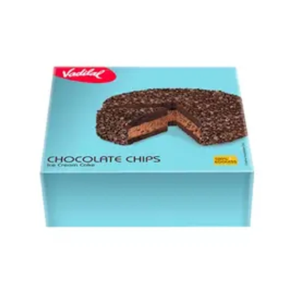Vadilal Chocolate Chips Ice Cream Cake - An ice cream cake filled with creamy vanilla and chocolate ice cream layers, topped with chocolate chips for an added crunch.
