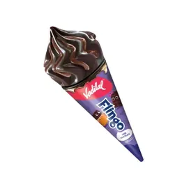 Vadilal Flingo Dark Chocolate Ice Cream Cone - A dark chocolate ice cream cone with a rich, intense chocolate flavor, ideal for dark chocolate lovers.